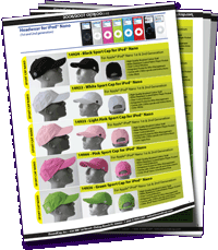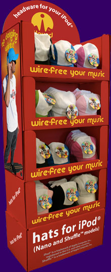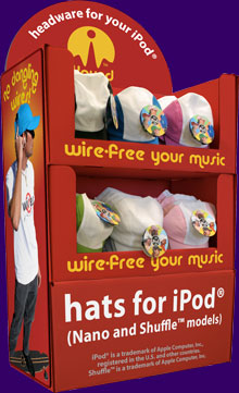 iXoundWear™ provides retailers with products dressed to grab the potential buyer's attention. Every hat, cap or visor comes with a flashy hang tag, showing pictures of people wearing the specific model, and a player identifier (e.g. for iPod® Nano, Shuffle™, etc.): users will immediately understand what use and player the product is designed for.