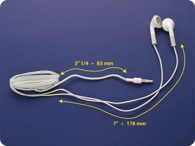 Step 1 Wind up the headset cord around the wire-spool. The length of wire left between the headset plug and the wire spool should be 3"1/4 (83 mm). The two stretches of wire left between the earpieces and the wire-spool should measure at least 7" (178 mm). |