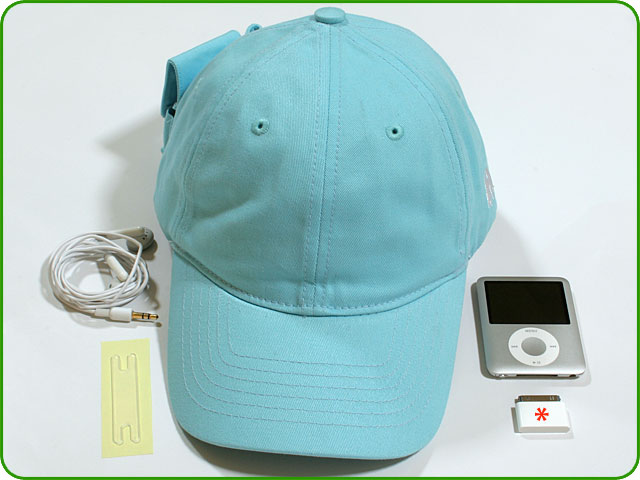 Before you start... Place in front of you the following elements: your new iXoundWear™ cap, your earbuds of choice, your iPod® Nano, one of the two wire-spools provided with the cap and the optional Nike®+iPod® module (marked with an asterisk in the picture). Note: Though your iXoundWear™ Sport/Running Cap for iPod® Nano 4G is compatible with the Nike®+iPod® Sport kit, such kit is not required in order to use the cap. |