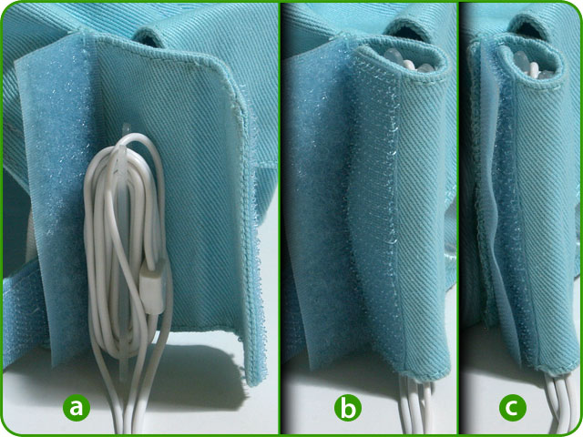 Step 2 Open the wire pocket (located next to the player pocket) by pulling apart the two Velcro® halves and lay the wire bundle against the open pocket (picture a). |