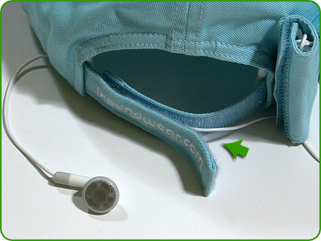Step 3 Open the back Velcro® strap. Run the left earbud wire along the strap. Close the strap. |