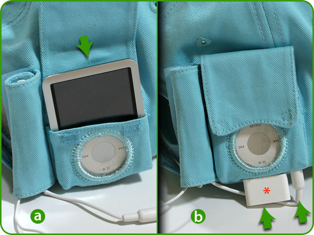Step 5 Slide your iPod® Nano into the player pocket (picture a). |