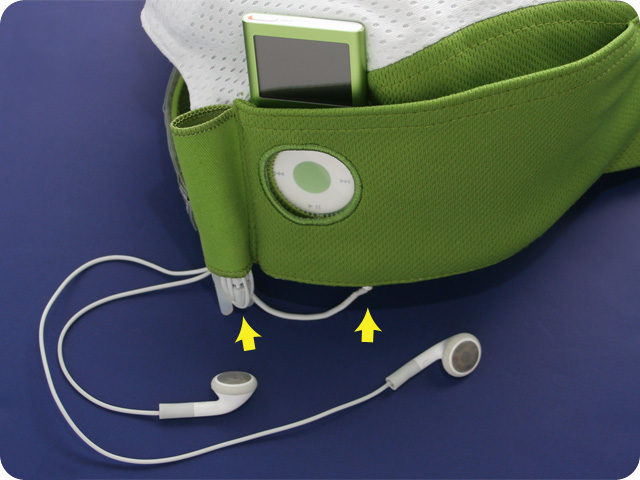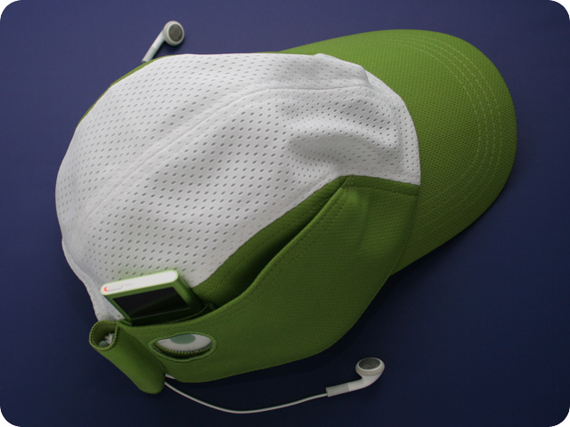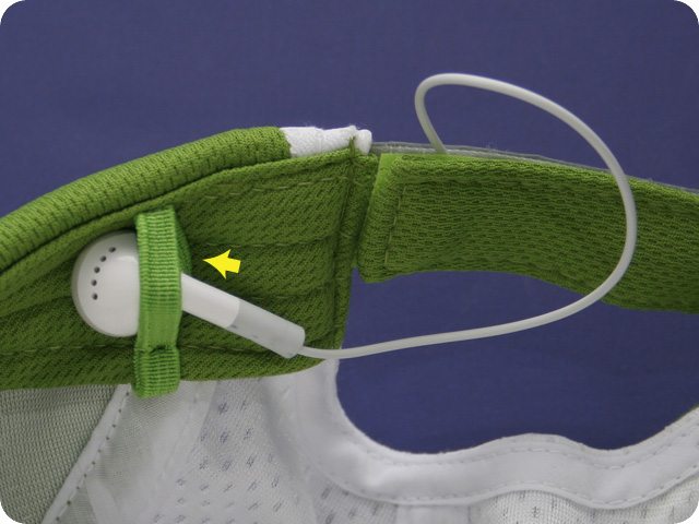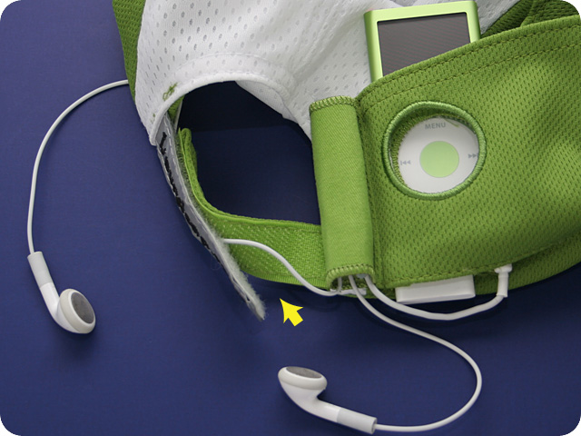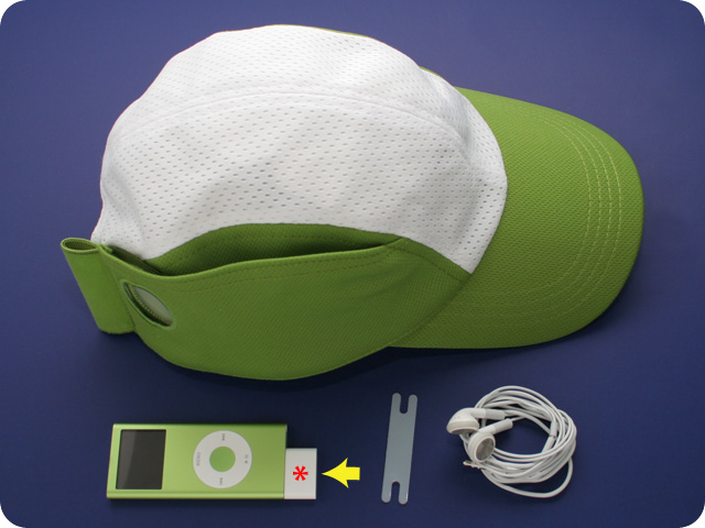 Before you start... Place in front of you the following elements: your new iXoundWear™ cap, your earbuds of choice, your iPod® Nano (with optional Nike®+iPod® kit) and one of the two wire-spools provided with the cap. Note: Your iXoundWear™ Running Cap for iPod® Nano is compatible with the Nike®+iPod® Sport kit. We recommend to connect the receiver (the white rectangular element of the 2-part kit - indicated by a red asterisk in the picture below) to your Nano prior starting the installation process. |