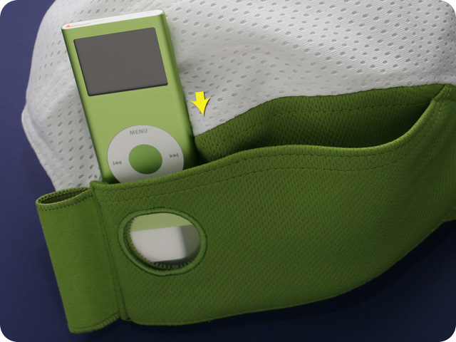 Step 2 Slide your iPod® Nano (with the optional Nike®+iPod® Sport Kit receiver - if present) into the player pocket. |