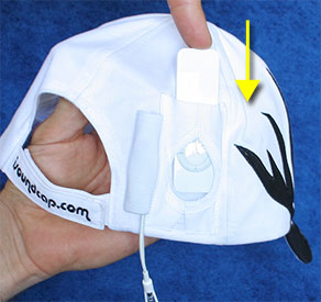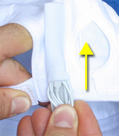 Step 11 Locate the stretchable loop inside the hat, next to the Velcro® strap (left side). |