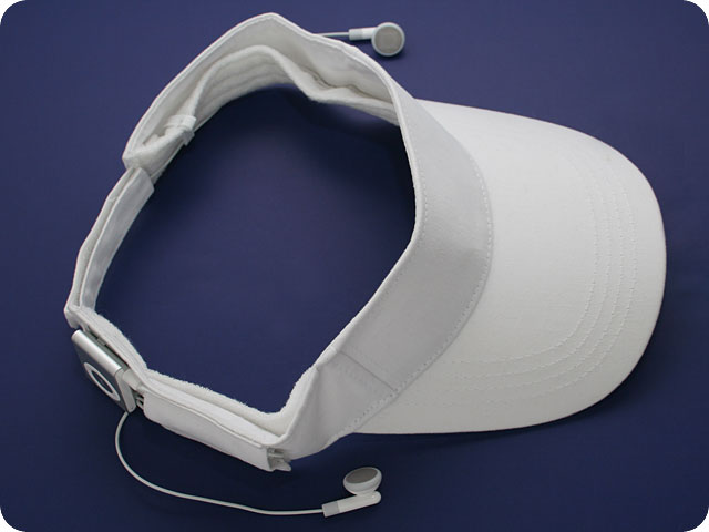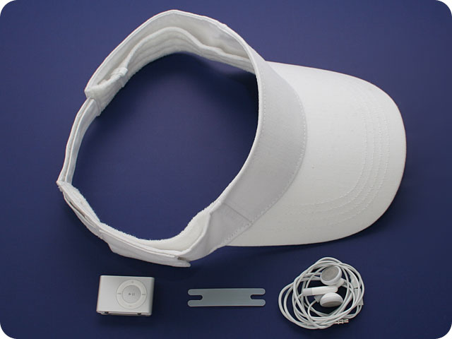 Before you start... Place in front of you the following elements: your new iXoundWear™ visor, your earbuds of choice, your iPod® Shuffle™ and one of the two wire-spools provided with the cap. |